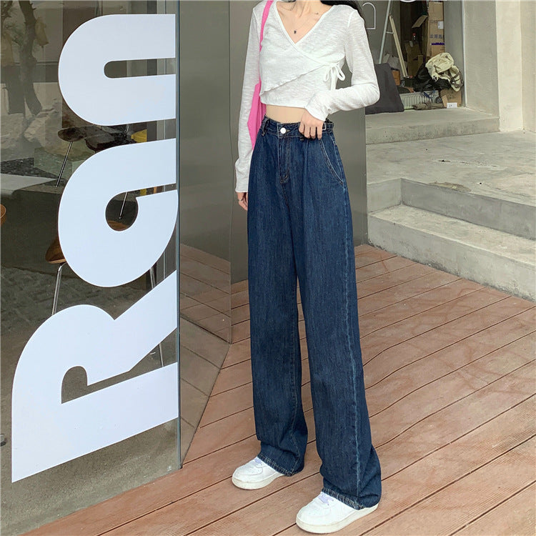 Wide-leg Straight-leg Mopping Denim Trousers